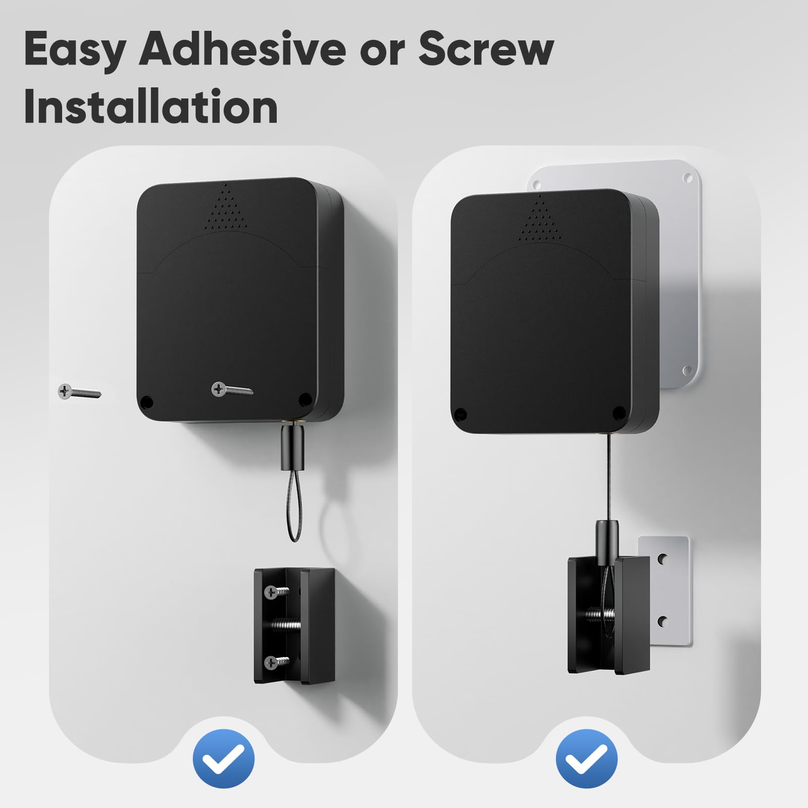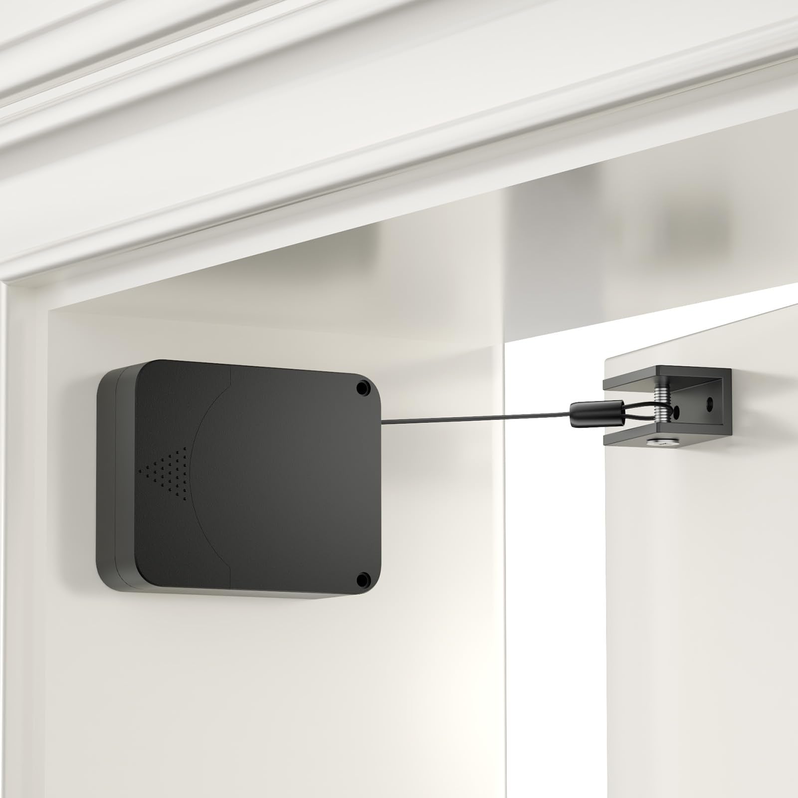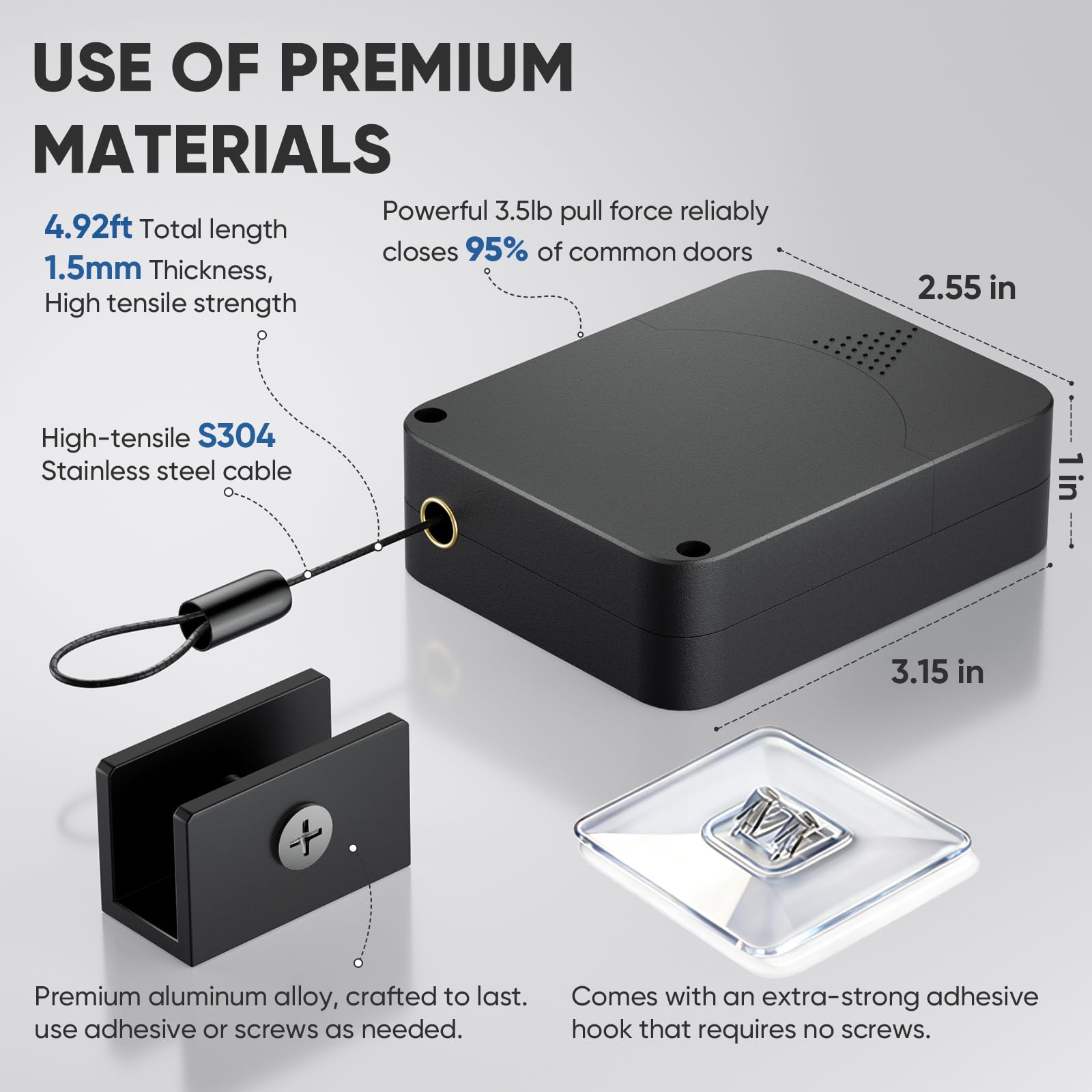 LAKIRA Retractable Automatic Door Closer with Anti-Slam Function - No-Screw Install for Standard, Screen & Sliding Doors - S304 Steel Cable with Powerful 3.5lb Closing Force (1 Pack Black)